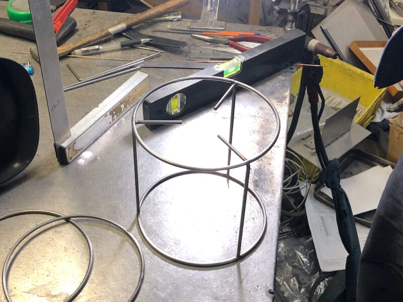 ところが、この焚火台にグリドルを乗せて焼き物をする際に、ソロストーブのゴトクでは若干不安定なので、より安定するゴトクを製作して欲しいとのこと。