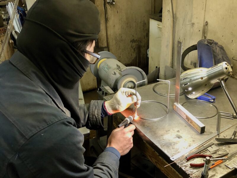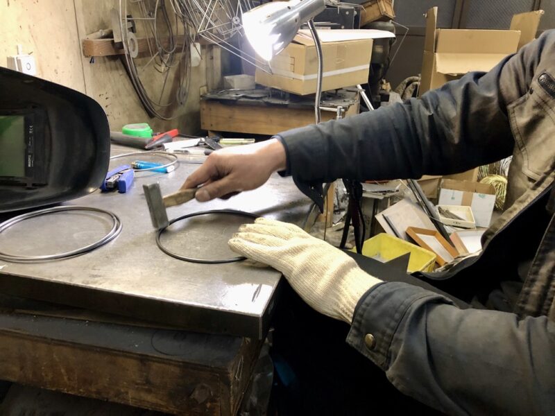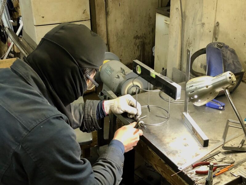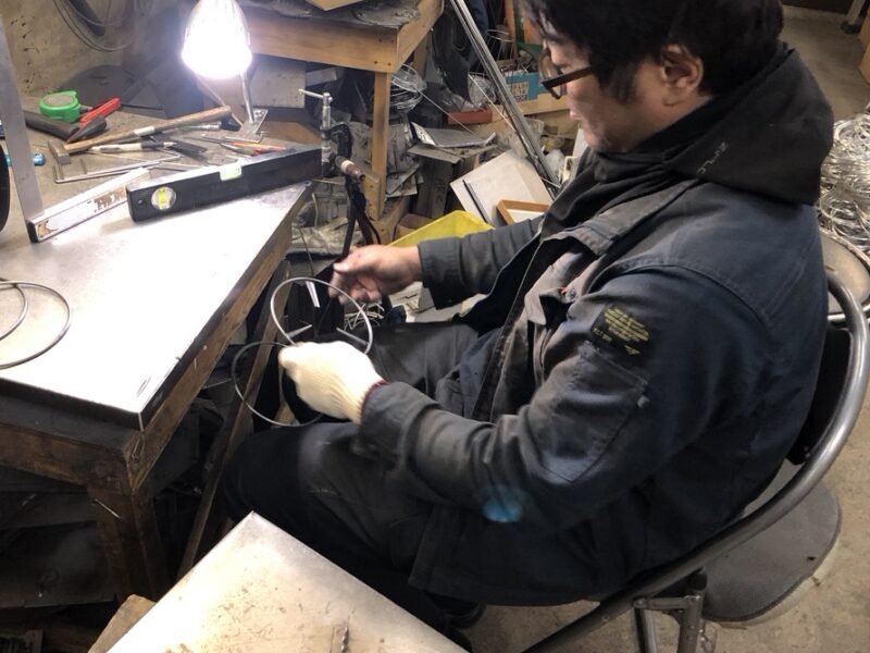 使用する材料は鉄の4mm棒1種類のみ、ここからパーツを切って曲げてしていきます。