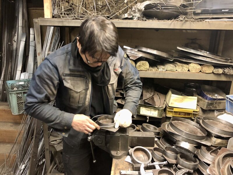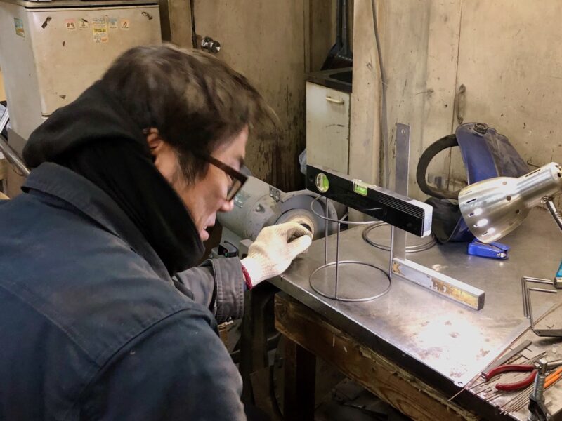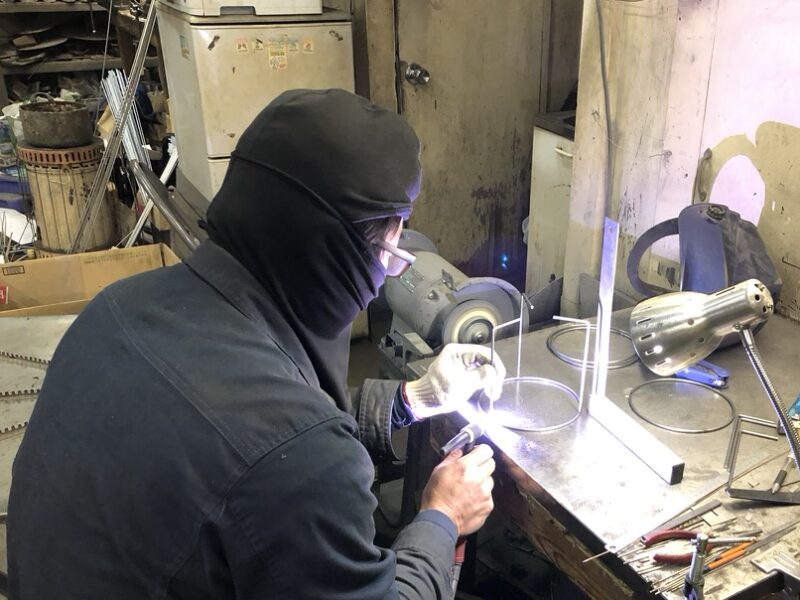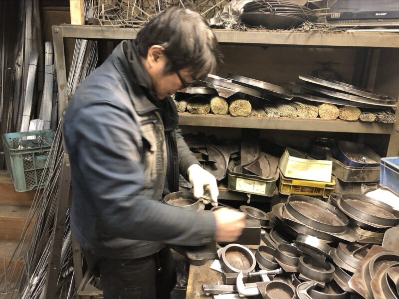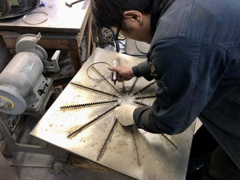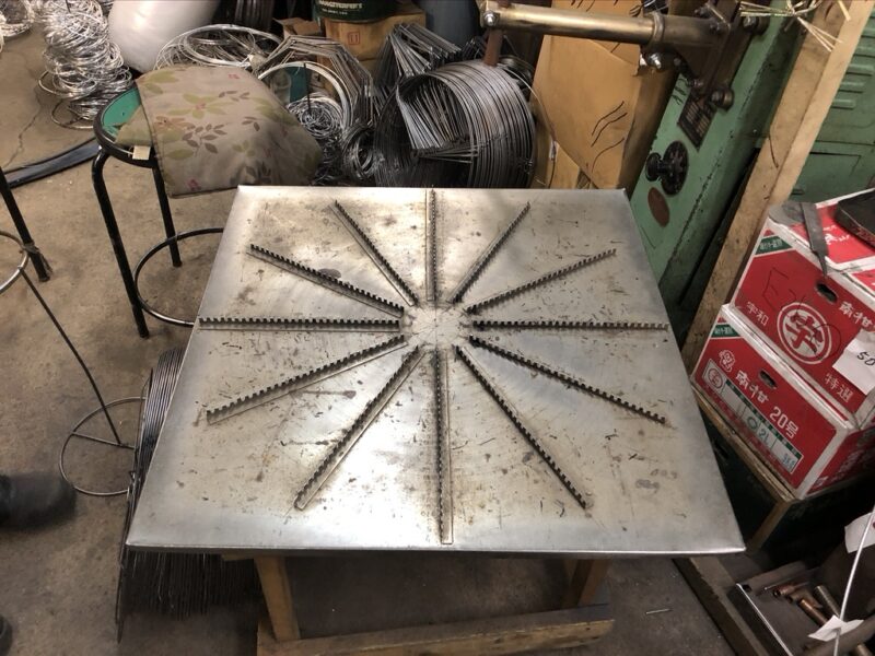 ところが、この焚火台にグリドルを乗せて焼き物をする際に、ソロストーブのゴトクでは若干不安定なので、より安定するゴトクを製作して欲しいとのこと。